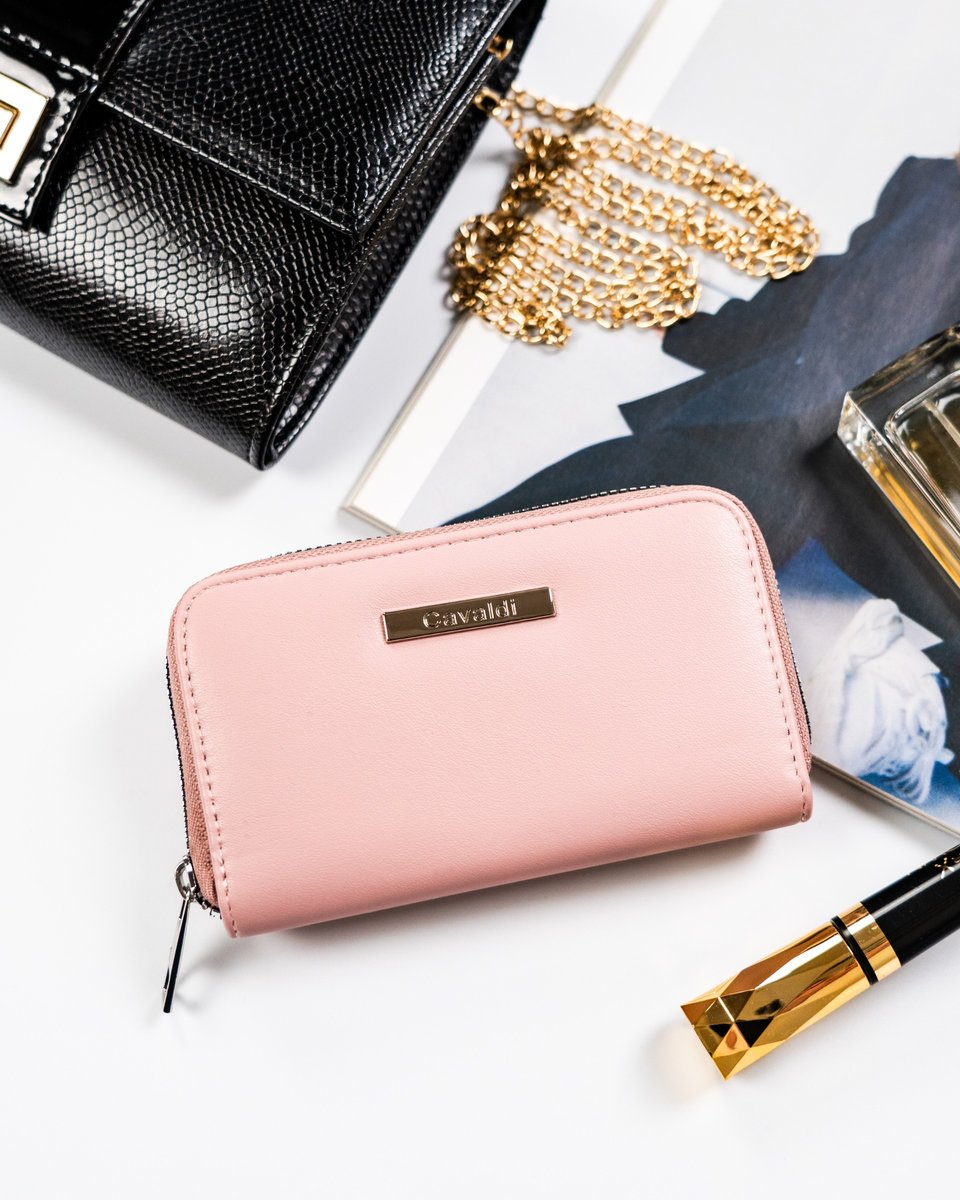 | Nazwa: | Średni portfel damski na suwak skóra ekologiczna portfel z kółkiem na klucze Cavaldi, różowy |