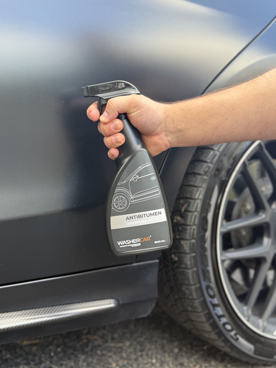 WasherCar Antibitumen to skuteczny preparat przeznaczony do usuwania smoły, asfaltu, śladów opon, tłustych plam oraz innych trudnych zanieczyszczeń pochodzenia drogowego i olejowego. Idealny do czyszczenia karoserii, lakieru, felg, plastiku i elementów chromowanych.