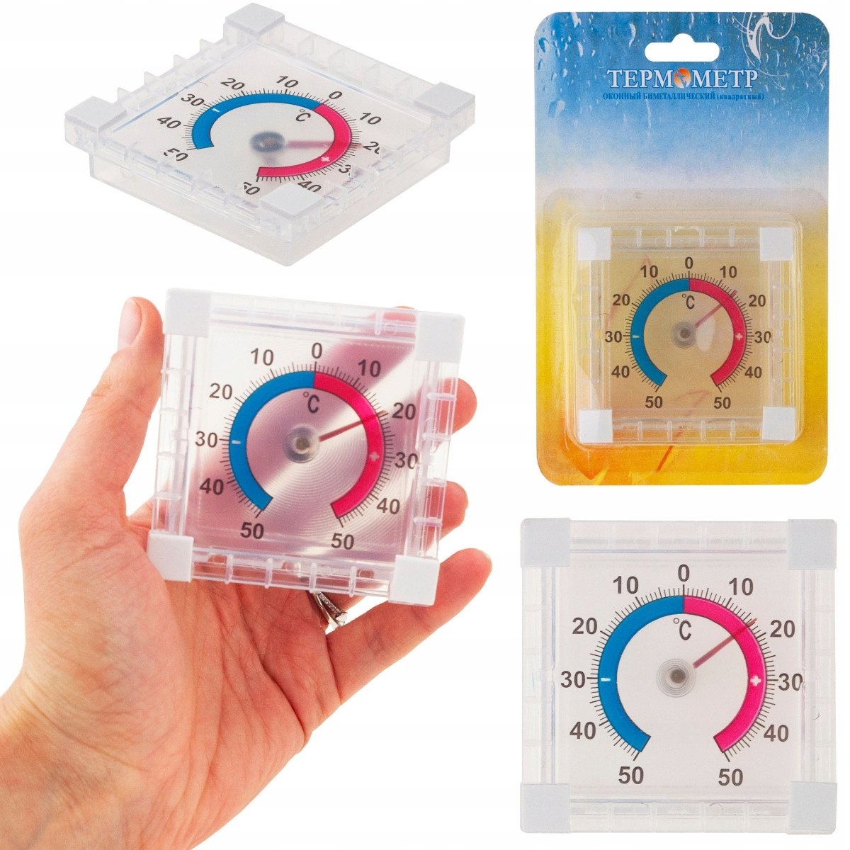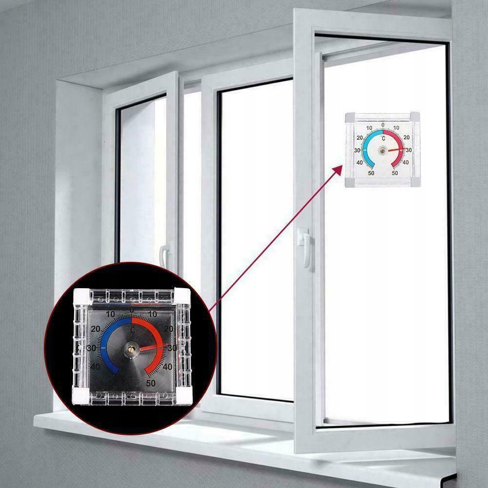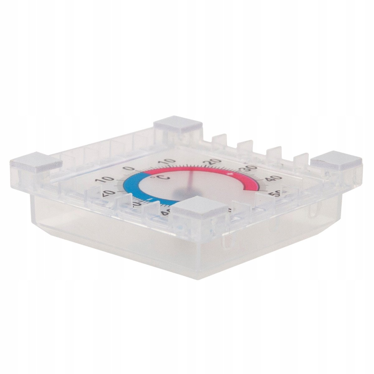- Samoprzylepny zaokienny termometr analogowy, wykonany z odpornego tworzywa.