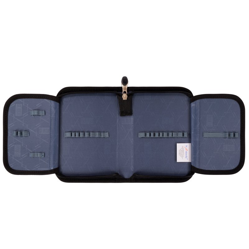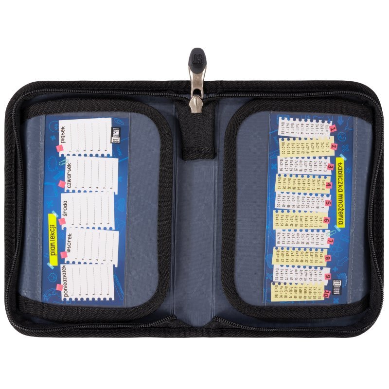 - dwie wewnętrzne klapki z miejscem na przybory piśmiennicze,
