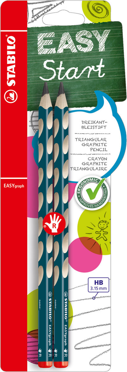 ołówki EasyGraph dla osób praworęcznych trójkątny, ergonomiczny kształt specjalny lakier zabezpieczający przed brudzeniem się strefy uchwytu miejsce na wpisanie imienia twardość: HB średnica grafitu: