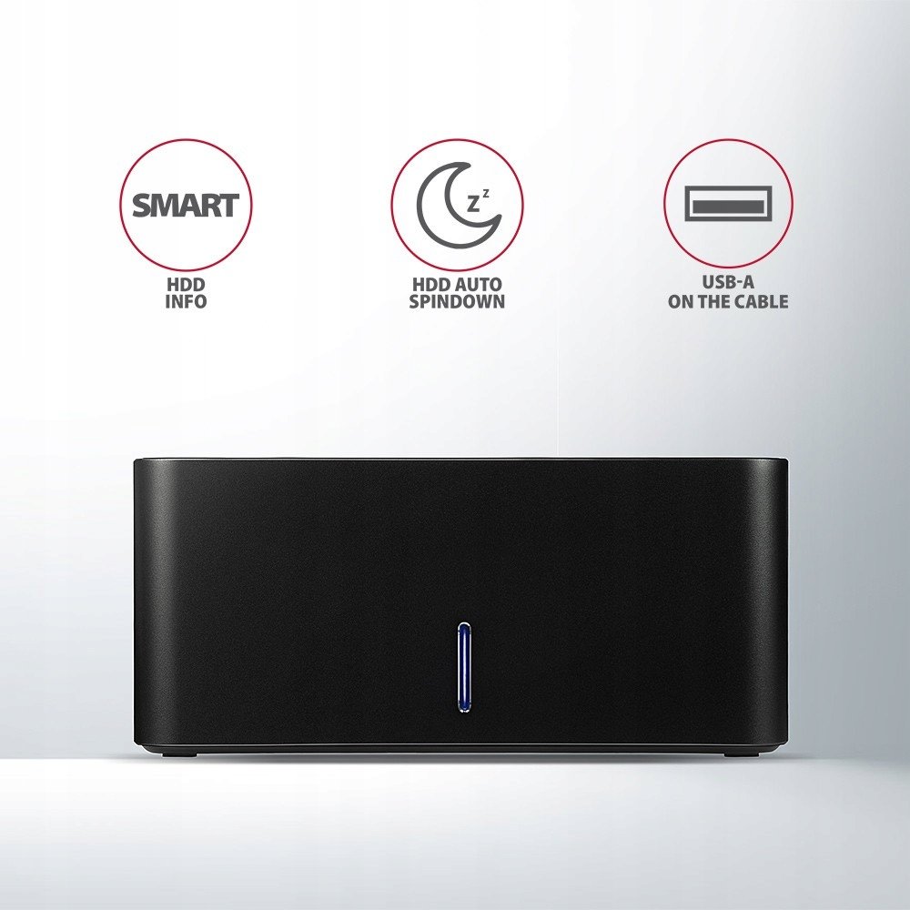 ADSA-SN Stacja dokująca, USB 3.2 Gen 1 - 1x SATA 6G 2.5''/3.5'' SSD/HDDStacja dokująca SuperSpeed AXAGON ADSA-SN COMPACT HDD/SSD DOCK przyłączy do komputera w prosty i szybki sposób dowolny dysk ...