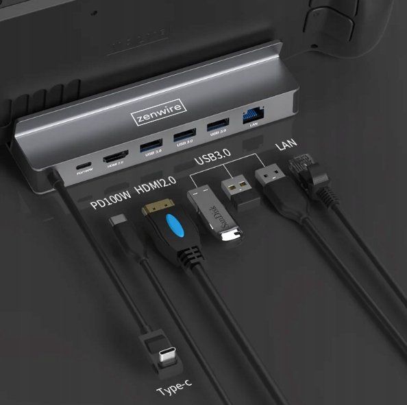 Stacja Dokująca Steam Deck oraz Samsung DEX 6w1 HUB USB-C HDMI 4K 60Hz Gigabit Ethernet 1000MBps RJ45 USB 3.0 5Gb/s Power Delivery 100W Adapter od Zenwire ST601