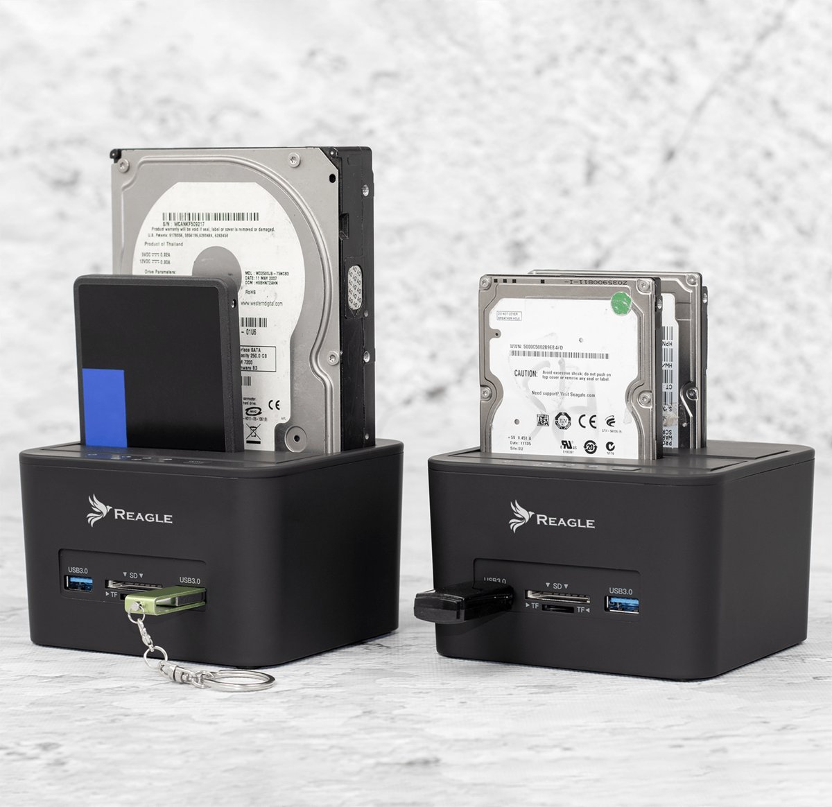 Stacja dokująca do dysków twardych Reagle może być używana do klonowania istniejącego dysku twardego bez podłączania do komputera lub po prostu jako zewnętrzna pamięć masowa do przenoszenia danych między dyskiem twardym a komputerem.
