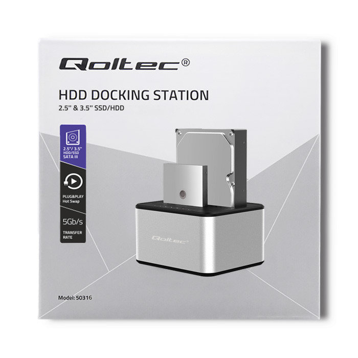 Stacja dokująca dysków Qoltec 2x HDD/SSD 2.5"/3.5" SATA USB 3.0 z funkcją klonowania
