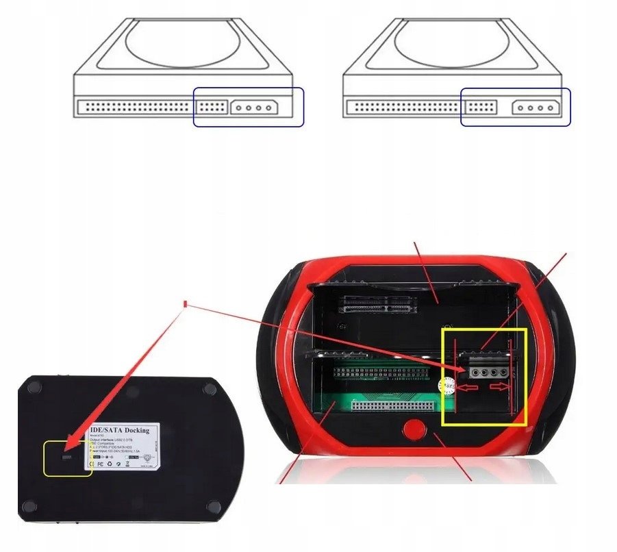 Stacja obsługuje dyski SATA i IDE wielkości 2,5" i 3,5".