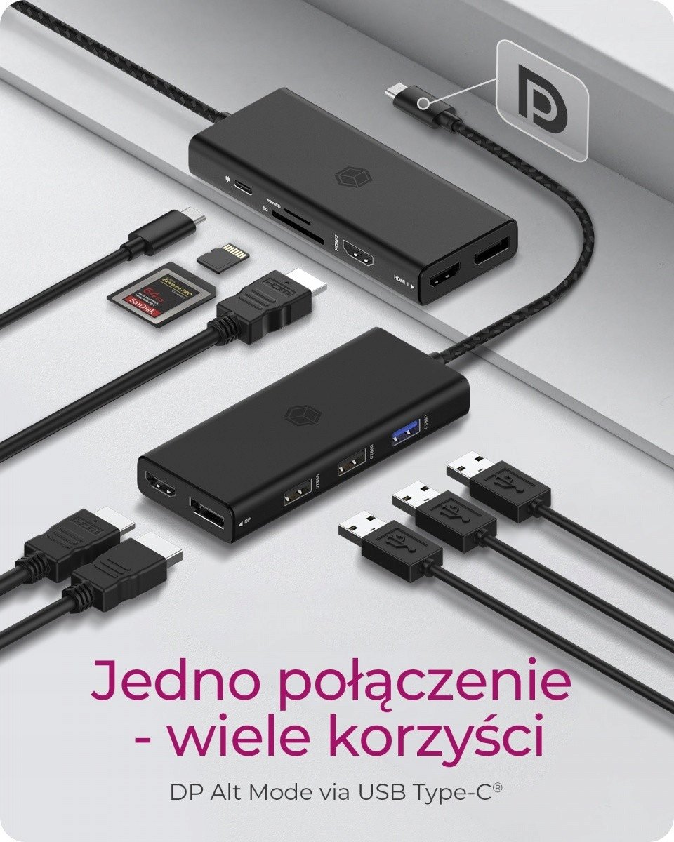- Wymagania sprzętowe: Windows / macOS / Chrome OS USB Type-C; Thunderbolt 3/4 Type-C; Wymagana obsługa DisplayPort Alt Mode i Power Delivery