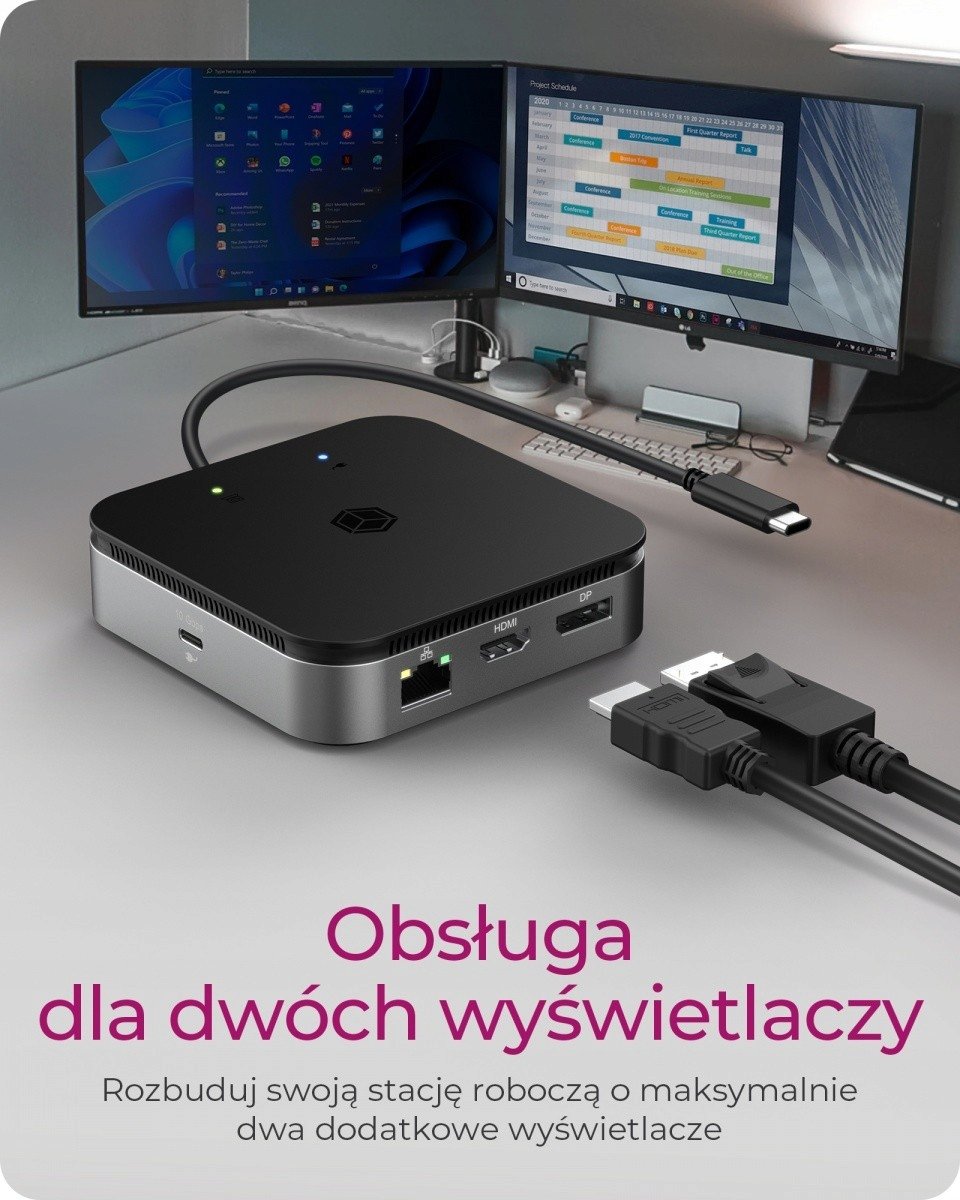 - Wymagania sprzętowe: USB4 Type-C / Thunderbolt 3/4 Type-C Wymagana obsługa DisplayPort (tryb alternatywny) i Power Delivery