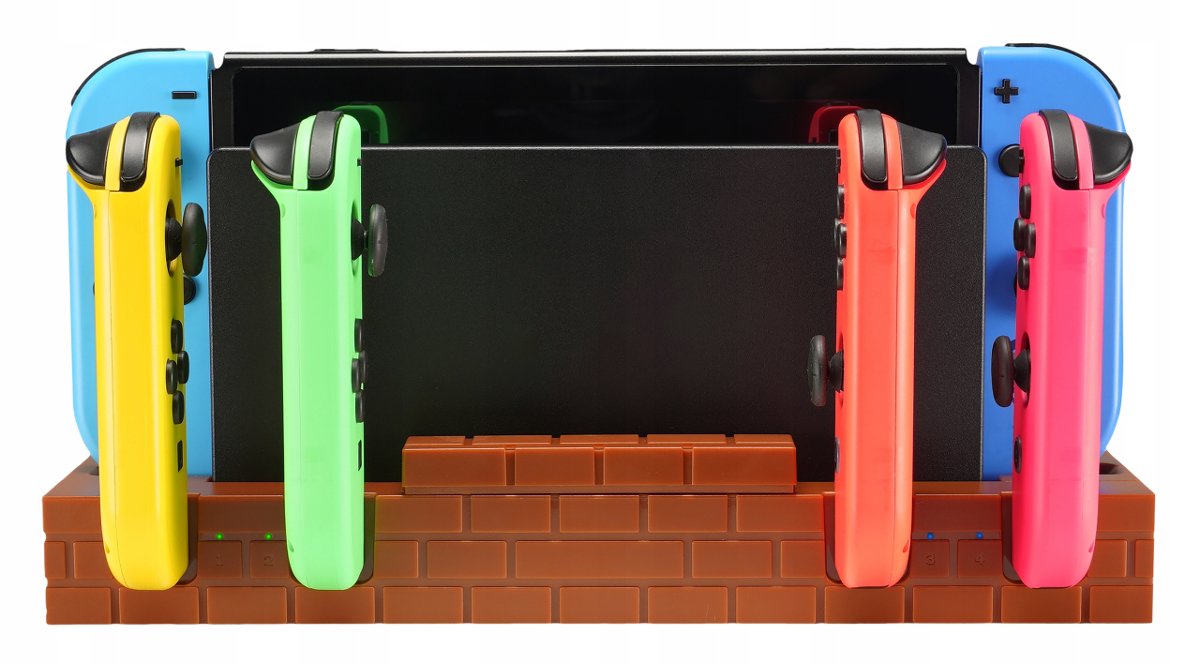 - Podstawka i ładowarka na maksymalnie 4 dodatkowe kontrolery Joy-Con od Nintendo Switch / Nintendo Switch OLED ( niezależne ładowanie każdego z kontrolerów)