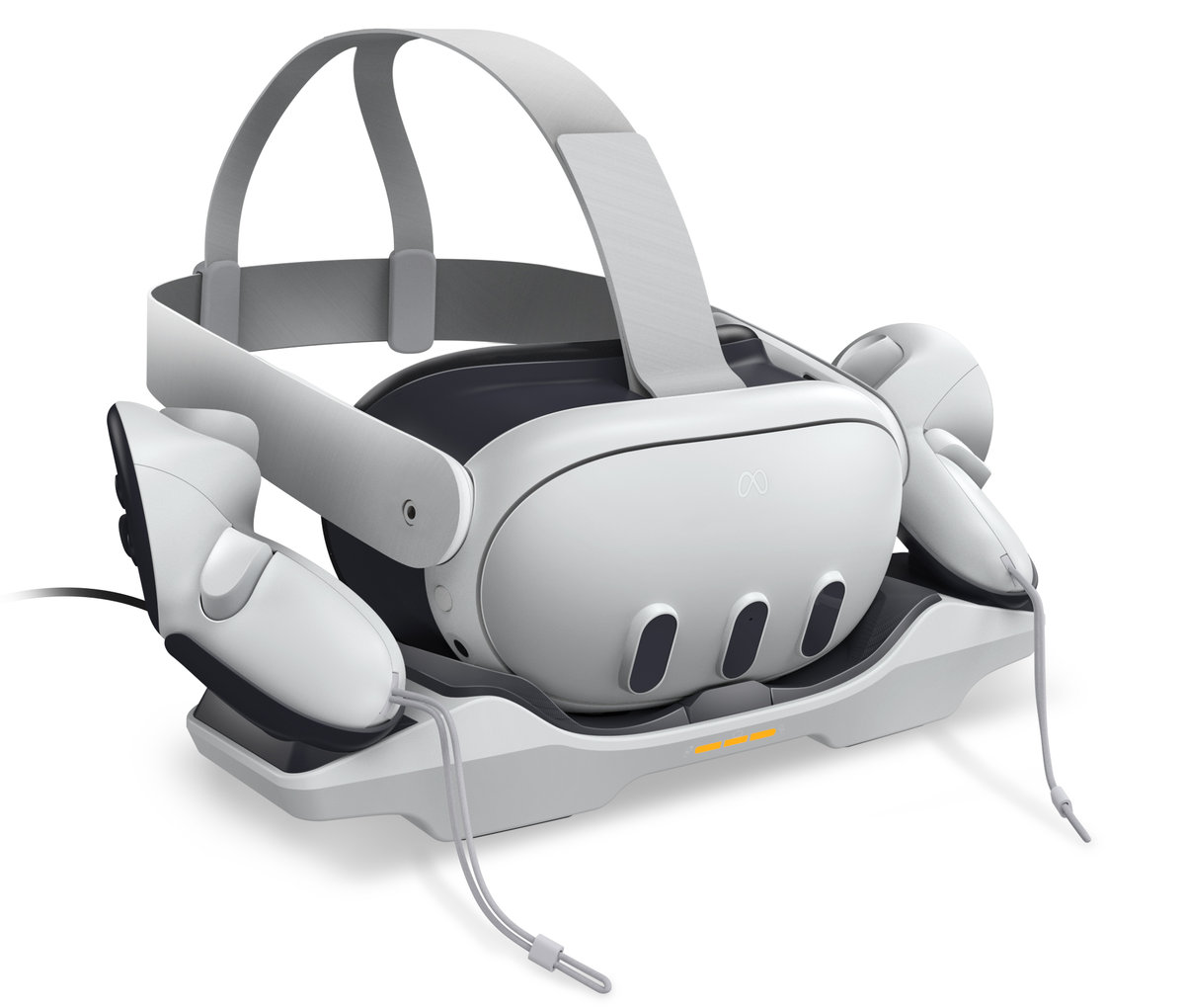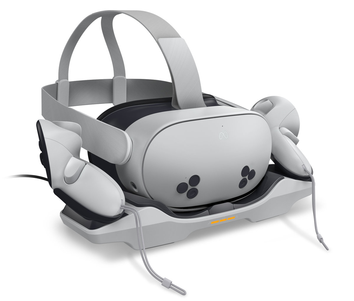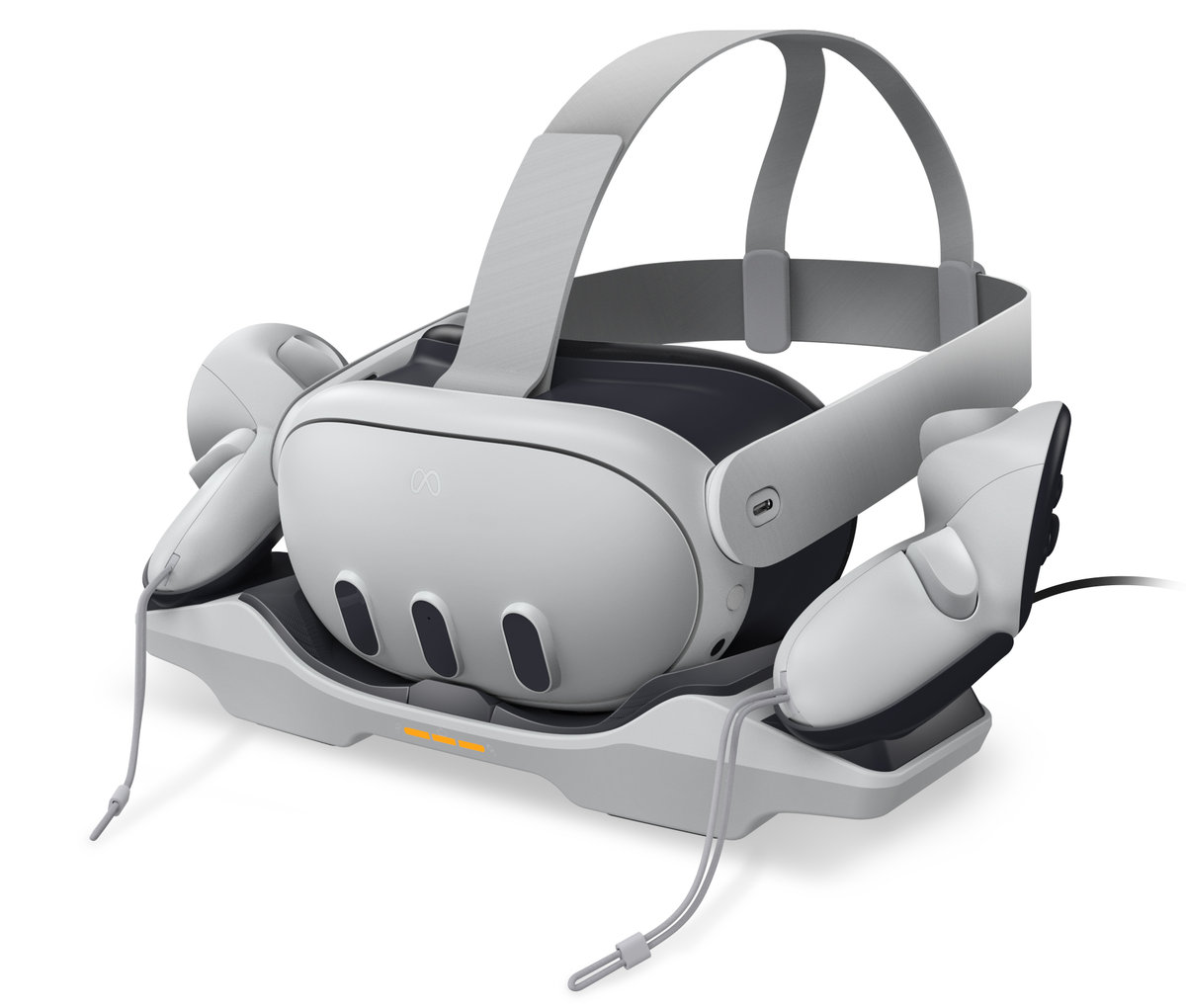 - Prezentuj i ładuj - łatwe ładowanie oraz prezentowanie zestawu Meta Quest 3 / 3S VR i kontrolerów,