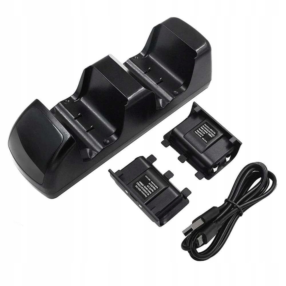 STACJA DOKUJĄCA DO ŁADOWANIA 2 PADÓW DO KONSOLI XBOX ONE / S / X + 2 AKUMULATORY 1200mAh DO PADÓW XBOX ONE ZE WSKAŹNIKIEM NAŁADOWANIA KAŻDEGO Z PADÓW Kolor : czarny Możliwość ładowania 2 padów ...