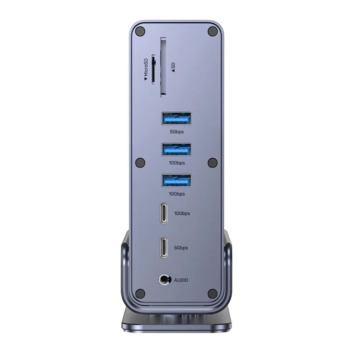 Nowa wersja stacji posiada pot PD o mocy 100W, co pozwala nie tylko ładować laptopa z pełną mocą, ale też zasilać dodatkowe urządzenia jednocześnie. Dzięki temu nie musisz wybierać, czy szybciej naładujesz telefon, czy utrzymasz laptopa pod napięciem. To wygoda, która naprawdę robi różnicę przy intensywnej pracy. Wydajność zasilania pozwala Ci działać dłużej, sprawniej i bez stresu o poziom baterii.Porty, które robią różnicę