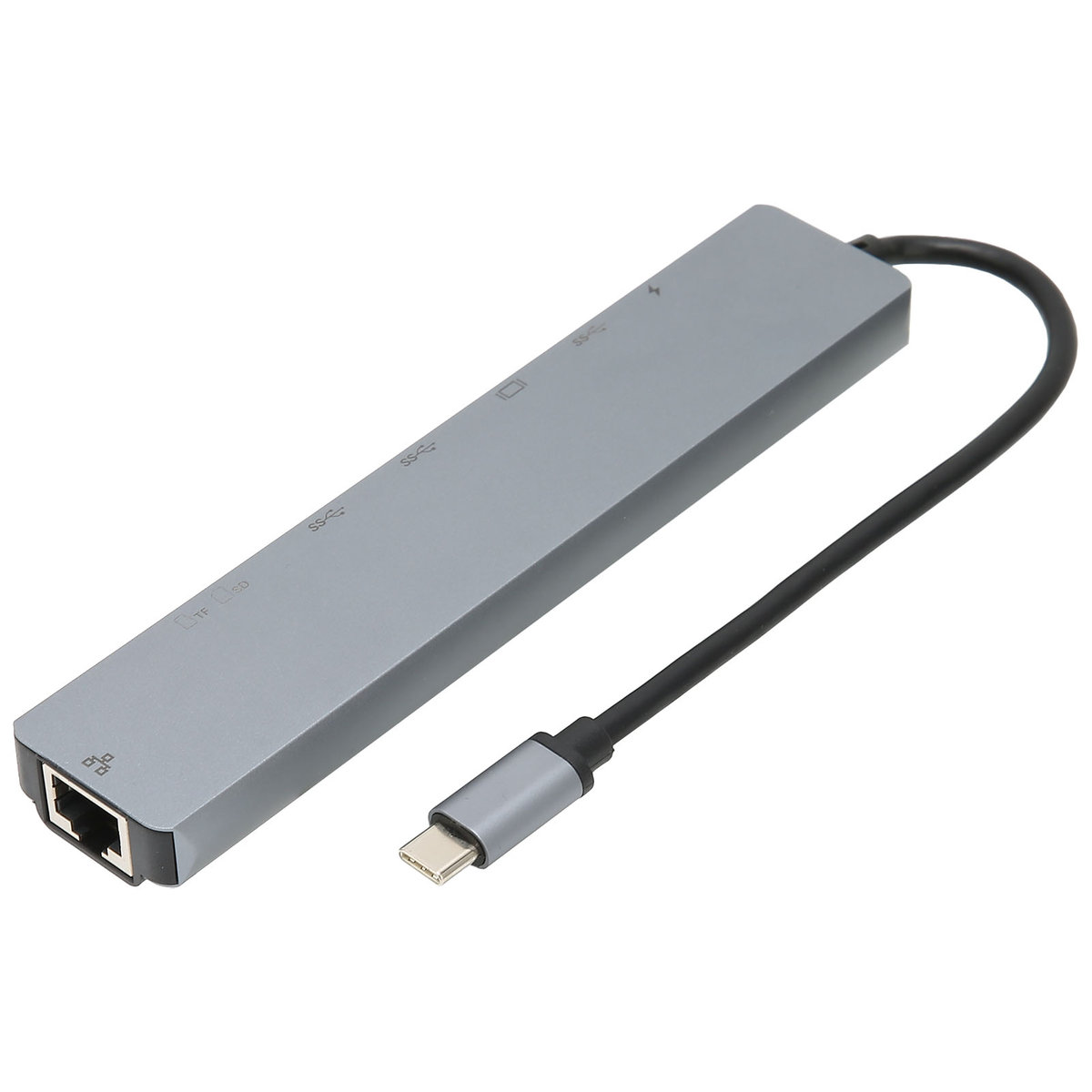 1、[8 w 1 Wielofunkcyjność] Adapter koncentratora Type C 8 w 1 z portem HD Multimedia Interface, portem RJ45 Ethernet, portem USB, portem USBC, odczytarką kart pamięci, odczytarką kart TF. Do 8 urządzeń peryferyjnych można podłączyć za pomocą jednego połączenia kabla.