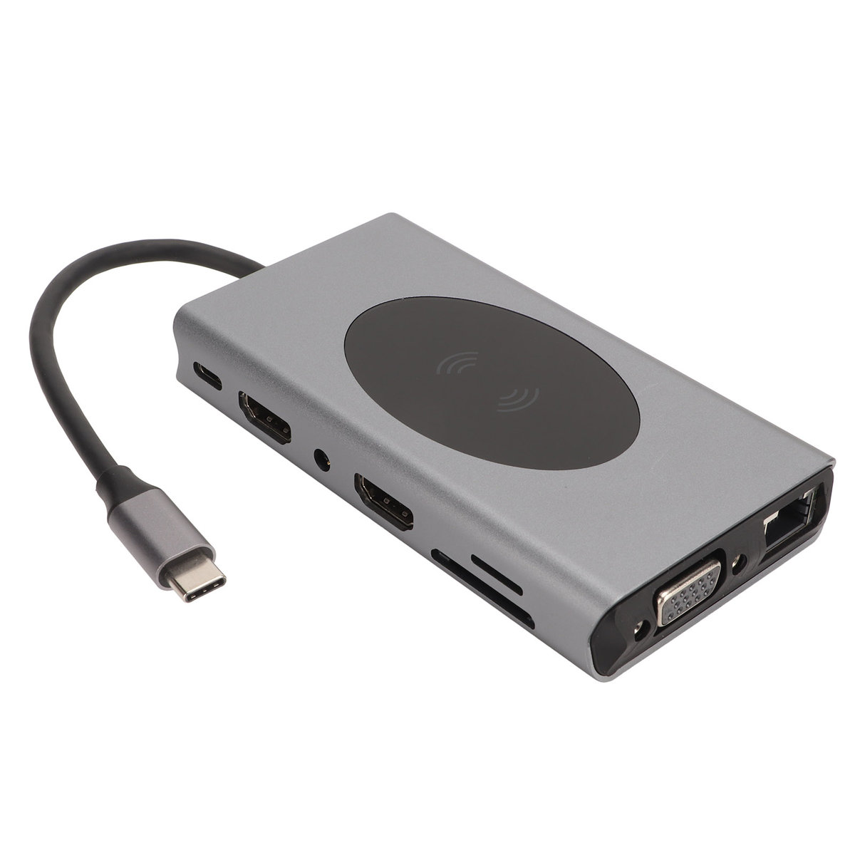 1. Wiele funkcji w jednym: Stacja dokująca 14 w 1 wyposażona jest w 2 x interfejs multimedialny, 1 x interfejs audio 3,5 mm, 1 x VGA, 1 x RJ45, 5 x USB3.0, 1 x SD, 1 x TF, 1 x bezdotykowe ładowanie. Więcej portów, więcej możliwości.