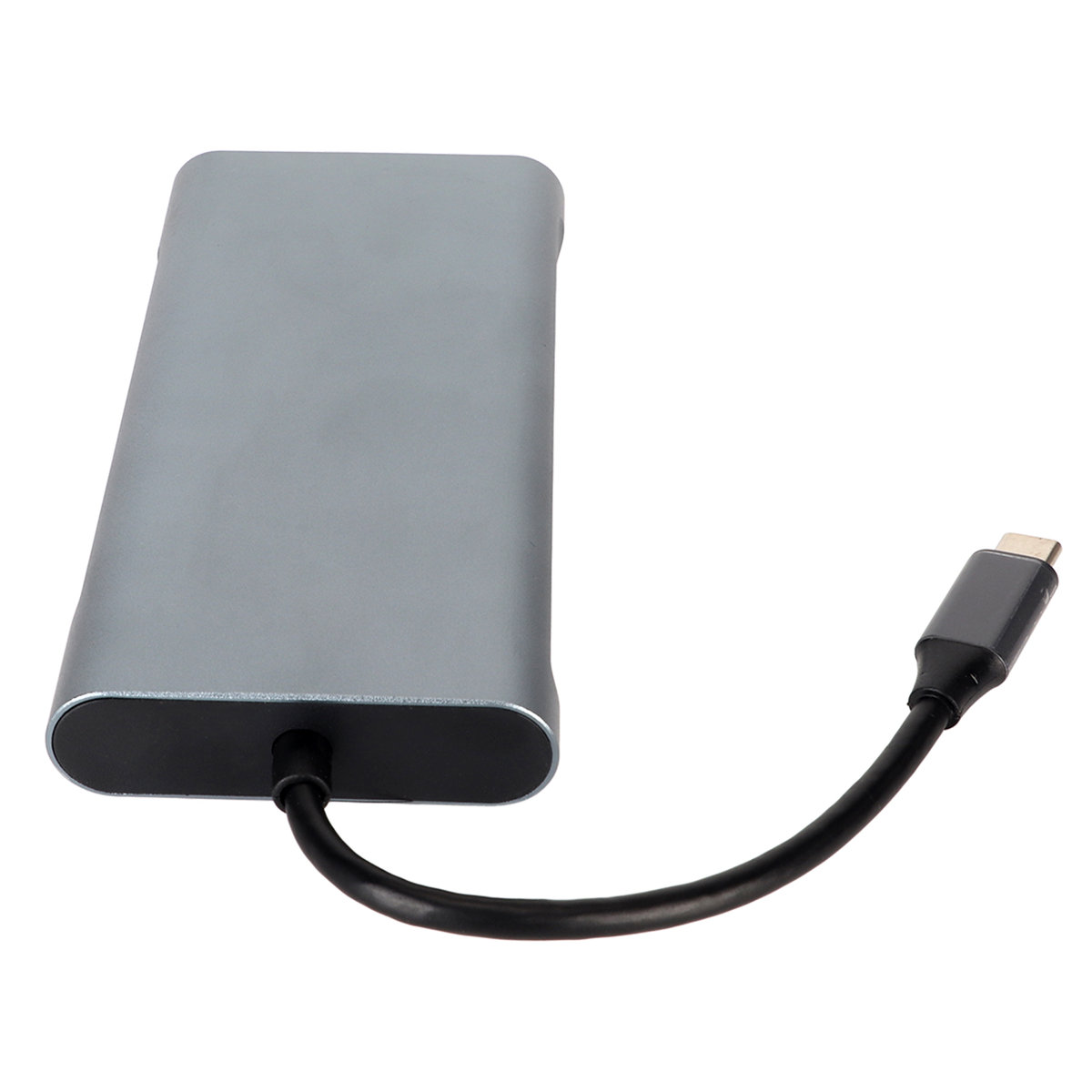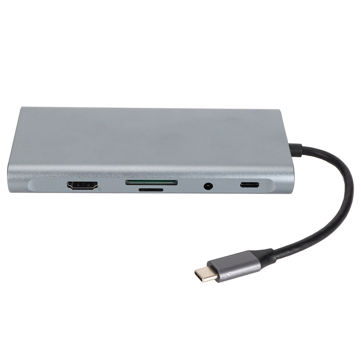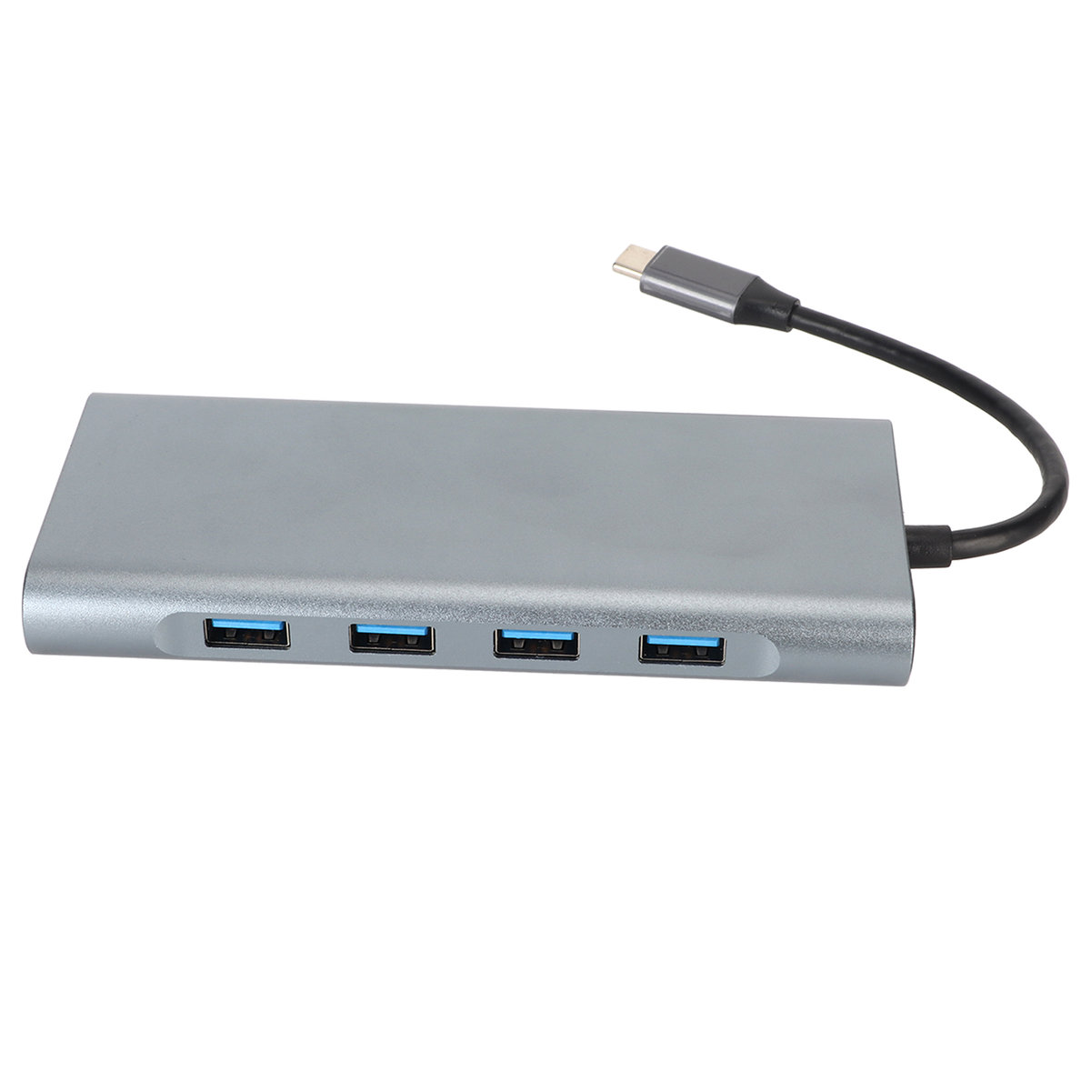 1. Projekt 11 w 1: Ten hub USB C oferuje 4 x porty USB 3.0, 1 x port ładowania PD, 1 x interfejs multimedialny 4K HD, 1 x interfejs VGA, 1 x port Ethernet RJ45, 1 x port audio 3,5 mm, gniazdo na kartę pamięci i gniazdo na kartę magazynującą.