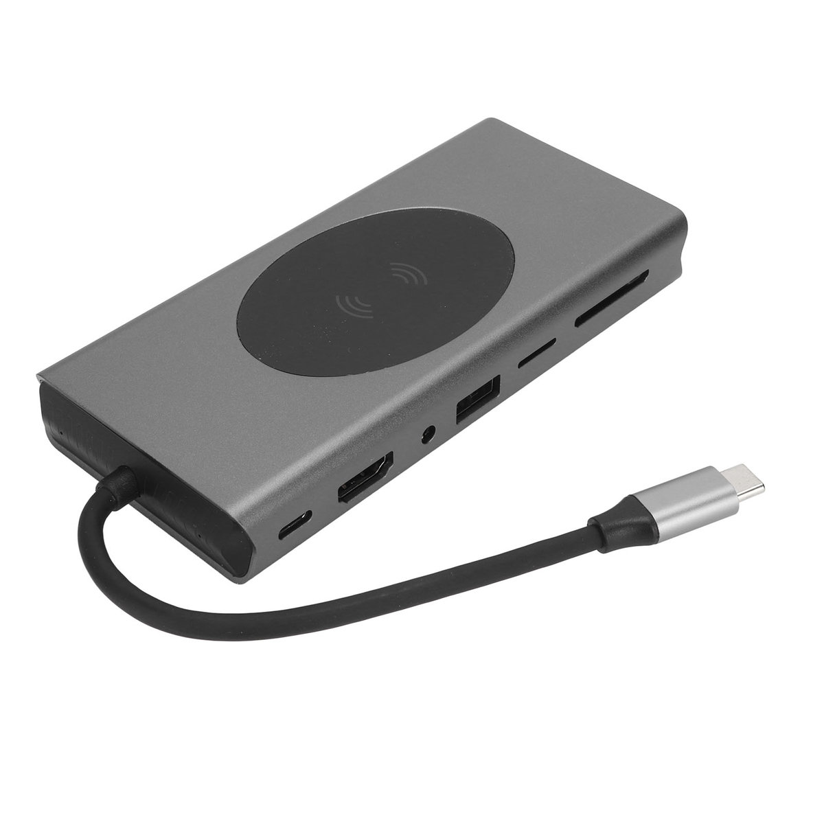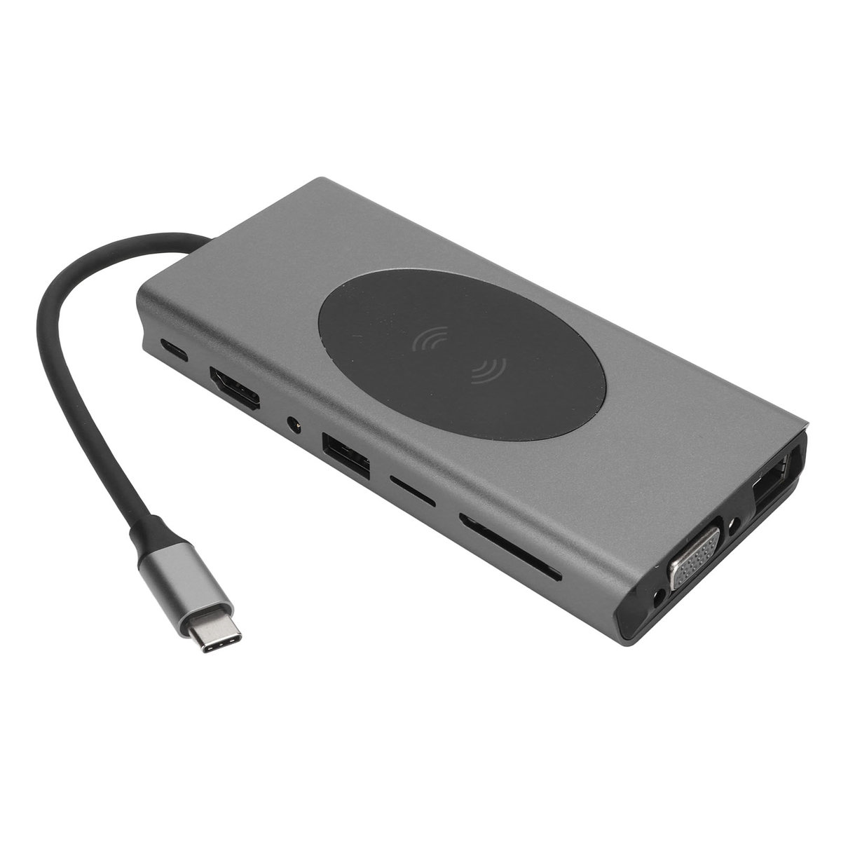 1. Wielofunkcyjna stacja dokująca 15 w 1: 1 x interfejs multimedialny 4K HD; 1 x USB C PD; 1 x interfejs audio 3,5 mm; 1 x VGA; 1 x RJ45; 4 x USB 2.0; 3 x USB 3.0; 1 x gniazdo karty pamięci (Storage Card); 1 x gniazdo karty pamięci (Memory Card); 1 x ładowanie bezprzewodowe; rozszerzenie wielogniazdo, nie martw się już o pojedynczy interfejs.