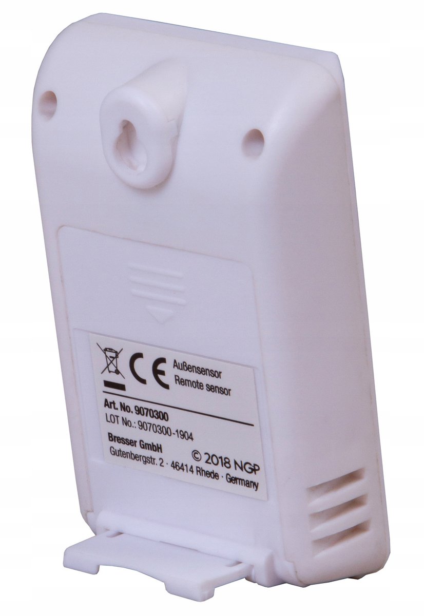 Marka Bresser GmbH, Niemcy Gwarancja 2 года EAN 4007922056654 Rozmiar opakowania (dł. x szer. x gł.) 23x23x6 cm Masa przesyłki 0.06 kg Miejsce użytku wewnątrz, na zewnątrz Typ stacja meteorologiczna Wbudowane funkcje termometr, higrometr, zegar, budzik Konstrukcja stołowy, bezprzewodowa, cyfrowy Zastosowanie do użytku domowego Jednostki miar % (RH – wilgotność względna) Jednostki miar °C, °F Zegar yes Format czasu 24-godzinny, 12-godzinny Budzik yes Automatyczna synchronizacja DCF (CET) Typ ekranu monochromatyczny Liczba ekranów 1 Częstotliwość sygnału radiowego, MHz 433 Promień sygnału radiowego, m 30 Zasilanie baterie AAA, 1,5 V (sprzedawane osobno): stacja meteorologiczna — 2 szt., czujnik zewnętrzny — 2 szt. Korpus tworzywo sztuczne Liczba podłączonych czujników zewnętrznych do 3 sztuk (1 sztuka w zestawie) Trend pogodowy przez następne 12 godzin Czujnik bezprzewodowy yes Kolor korpusu czarny