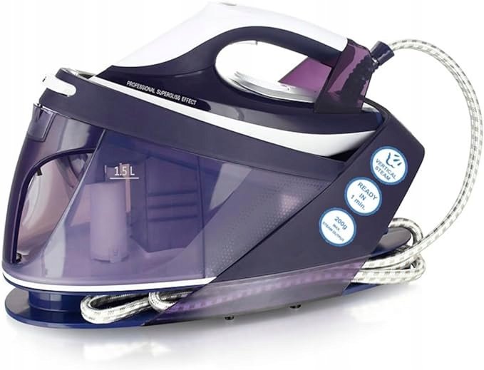 Mocne ciśnienie pompy 5,5 bar – ciągłe oddawanie pary 100 g/min i maksymalne uderzenie 200 g/min zapewniają idealne rezultaty prasowania.