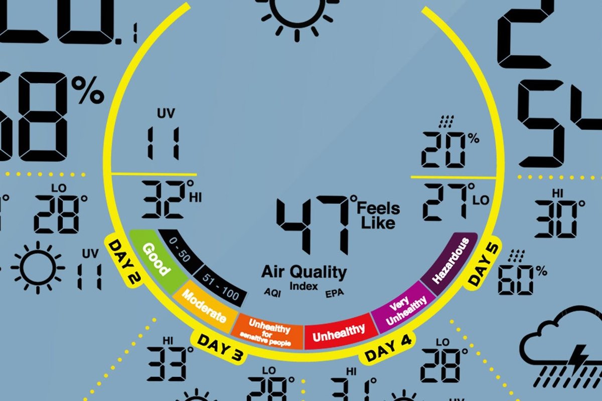 - Prognoza pogody: Prognoza (na najbliższe 5 dni) – pogoda, maksymalna i minimalna temperatura, opady deszczu i indeks UV, aktualizowana na bieżąco przy użyciu połączenia Wi-Fi