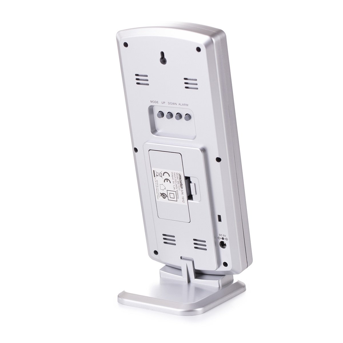 Funkcja prognozy pogody to nie wszystkoStacja pogodowa wygląda bardzo nowocześnie i stylowo, dzięki czemu ciekawie zaprezentuje się w każdym wnętrzu. Wyświetlacz podzielony jest na część poświęconą odczytom wewnętrznym i osobno zewnętrznym oraz środkową część, na której widzimy zilustrowaną pogodę za oknem, godzinę oraz datę z podziałem na dzień i miesiąc. To prawdziwa oszczędność miejsca, jeśli jeden produkt pełni tyle funkcji. Dodatkowo możemy ustawić alerty, które ostrzegą nas o wysokich/niskich temperaturach oraz wykorzystać stację jako budzik. Alarm ma trzy ustawienia, które różnią się częstotliwością wydawanych dźwięków oraz opcję „drzemki”, która jednocześnie pomoże ustawić odpowiedni poziom oświetlenia lub je całkowicie wyłączyć. To profesjonalne urządzenie niekoniecznie dla profesjonalistów, którzy chcą być na bieżąco ze zmieniająca się za oknem pogodą. |