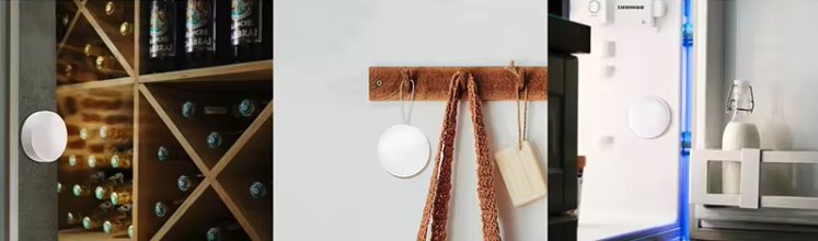 Małe czujniki wtopią się w otoczenie dzięki możliwości ich zawieszenia na sznurku, bądź przyklejenia do danej powierzchni za pomocą posiadanej taśmy samoprzylepnej.