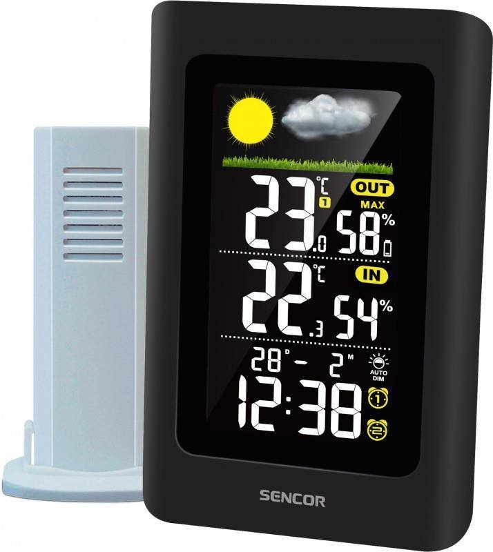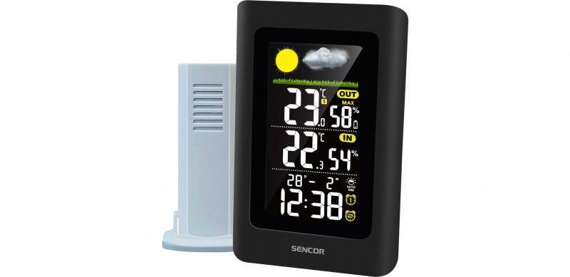 Stacja pogody Sencor SWS 4270 - Budzik: Tak - Masa: 155 g - Drzemka: Tak - Głębokość: 5 cm - Szerokość: 9,4 cm - Wysokość: 14,6 cm - Kolorowy wyświetlacz LCD - Prognoza pogody na: 2 dni - Czujnik w ...