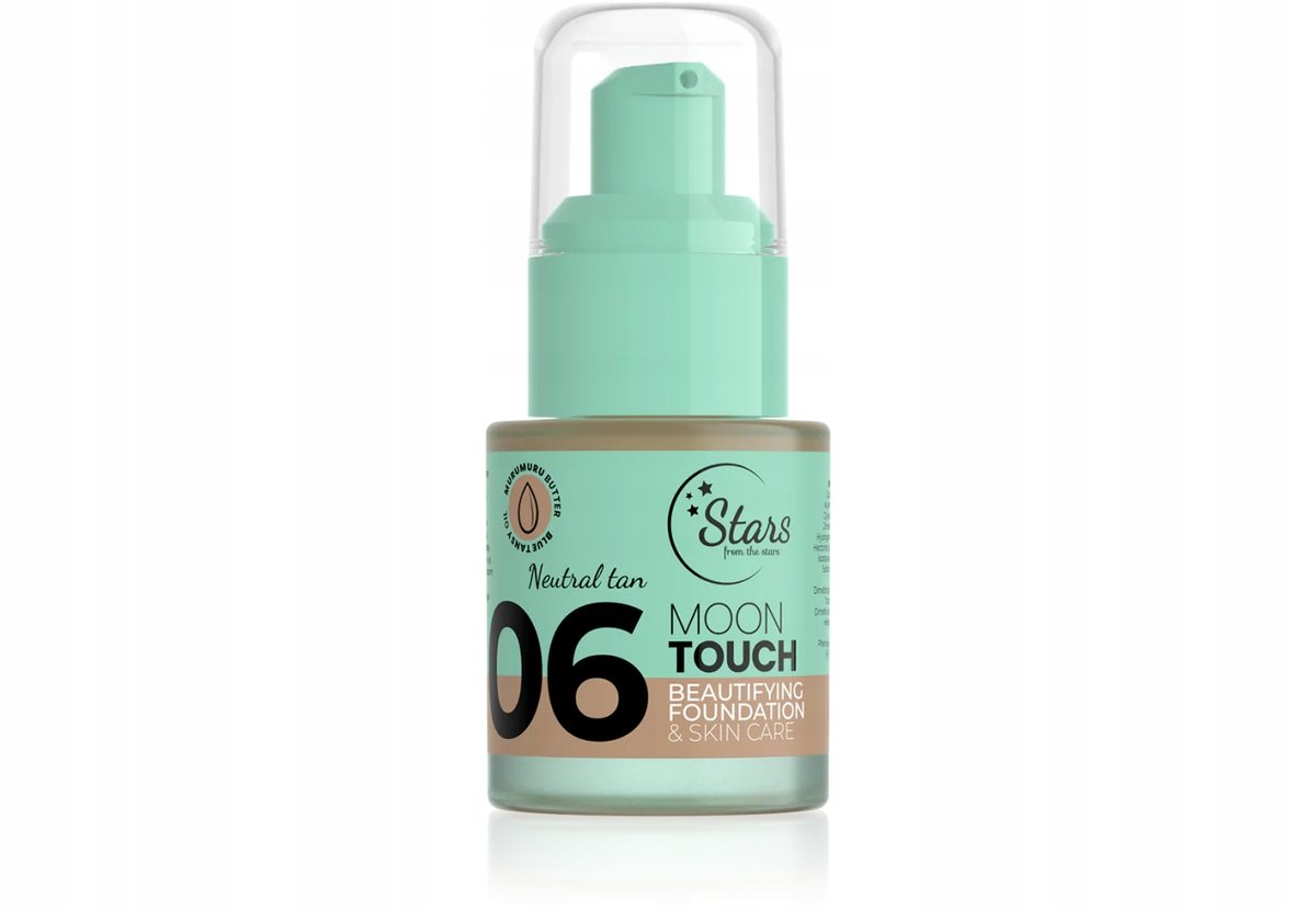 Stars from the stars MOON TOUCH podkład upiększająco-pielęgnujący 06 NEUTRAL TANUpiększająco-pielęgnujący podkład o średnim, możliwym do budowania kryciu i naturalnym, w kierunku miękkiego matu, ...
