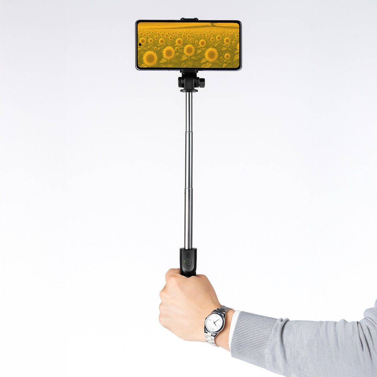 ✔️ 2w1 – zestaw zawiera monopod z możliwością rozłożenia do statywu (jako tripod) oraz zdalnego pilota do robienia zdjęć). Zmiana trybu jest łatwa i wymaga zaledwie kilku ruchów. Należy zsunąć uchwyt do pilota, rozłożyć nóżki. Monopod rozsuwa się do długości 60cm, a uchwyt na telefon obraca się o 360 stopni.