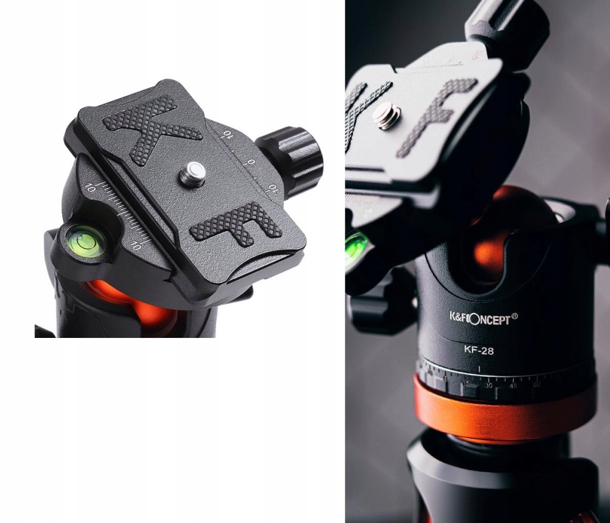 Uwaga! Przedmiotem sprzedaży jest jedynie statyw firmy K&F wraz z głowicą. Pozostałe akcesoria, aparaty, telefony i kamery pełnią jedynie funkcję poglądową i nie są przedmiotem sprzedaży.