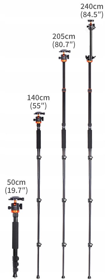 Statyw K&F S210 / 3w1 / 231 cm Produkt 4w1 Statyw płynnie regulowany do wysokości 231 cm Monopod / wysięgnik teleskopowy o wysokości do 240 cm Głowica panoramiczna 3D do 10 kg obciążenia Odwracalna, ...