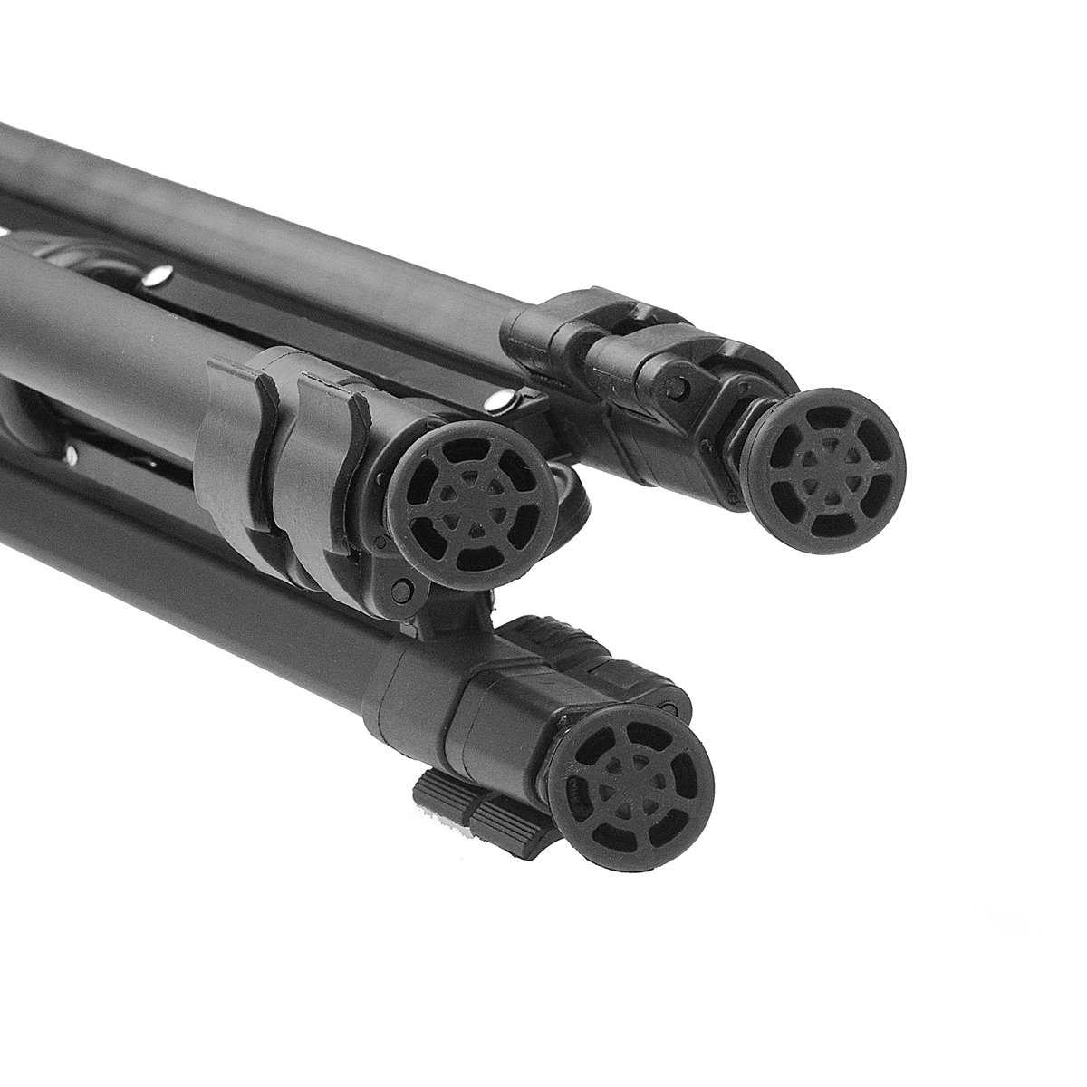 Sekcje nóg blokowane są za pomocą zacisków z tworzywa sztucznego. Każda z nóżek osadzona jest na przegubie kulowym dzięki czemu stopki łatwo dopasowują się do podłoża. Nóżki składane klasycznie, teleskopowo (3 sekcje).