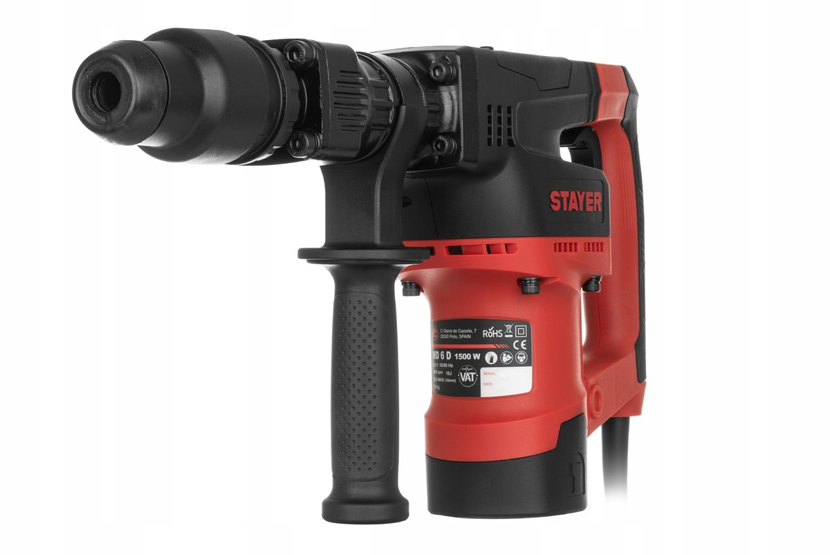 STAYER MD 6 D K Młot wyburzeniowy SDS-MAX 1500 W z funkcją dłutowania i systemem antywibracyjnym Cechy produktu: Szybsze tempo pracy przy wyburzeniach – Energia udaru 16 J i częstotliwość 2600 ...
