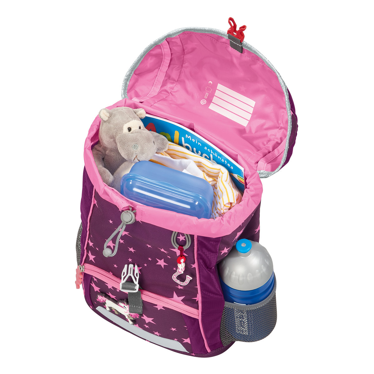 W tym plecaku znajdzie się również miejsce na zapisanie nazwiska i adresu. Dzięki temu dziecko zawsze znajdzie swój plecak. W głównej komorze znajduje się mocowanie, do którego można łatwo i bezpiecznie przyczepić klucze lub breloczki.