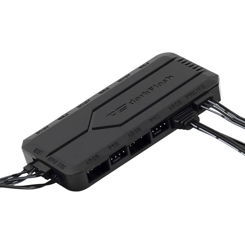 Moduł kontroler PWM marki Darkflash został wyposażony w kilka portów ARGB oraz PWM. Obsługuje aż 14 efektów świetlnych i można go zsynchronizować z płytą główną. Umożliwia kontrolę temperatury oraz prędkości wentylatora. Jest przy tym przyjazny użytkownikom i niezwykle trwały.