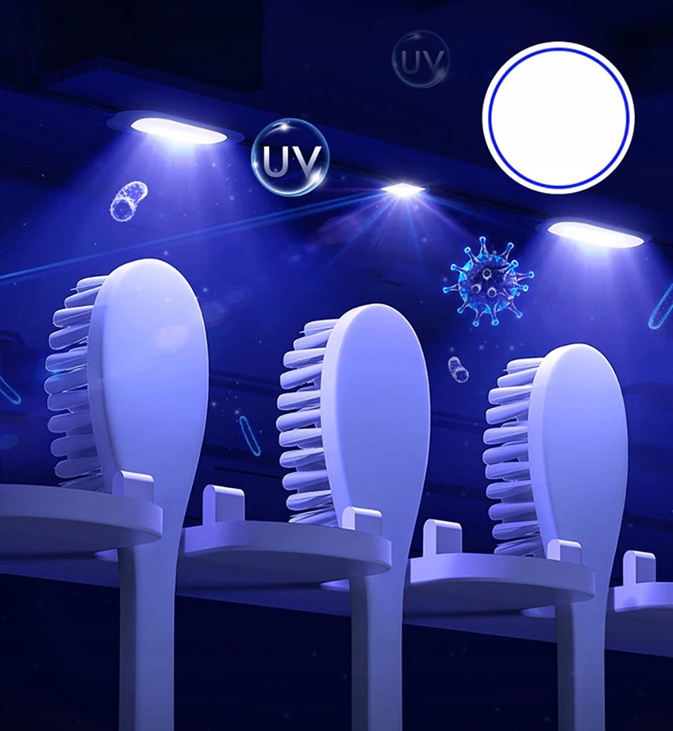 Sterylizator szczoteczki UV może skutecznie czyścić mikroorganizmy znajdujące się na powierzchni głowy szczoteczki do zębów.