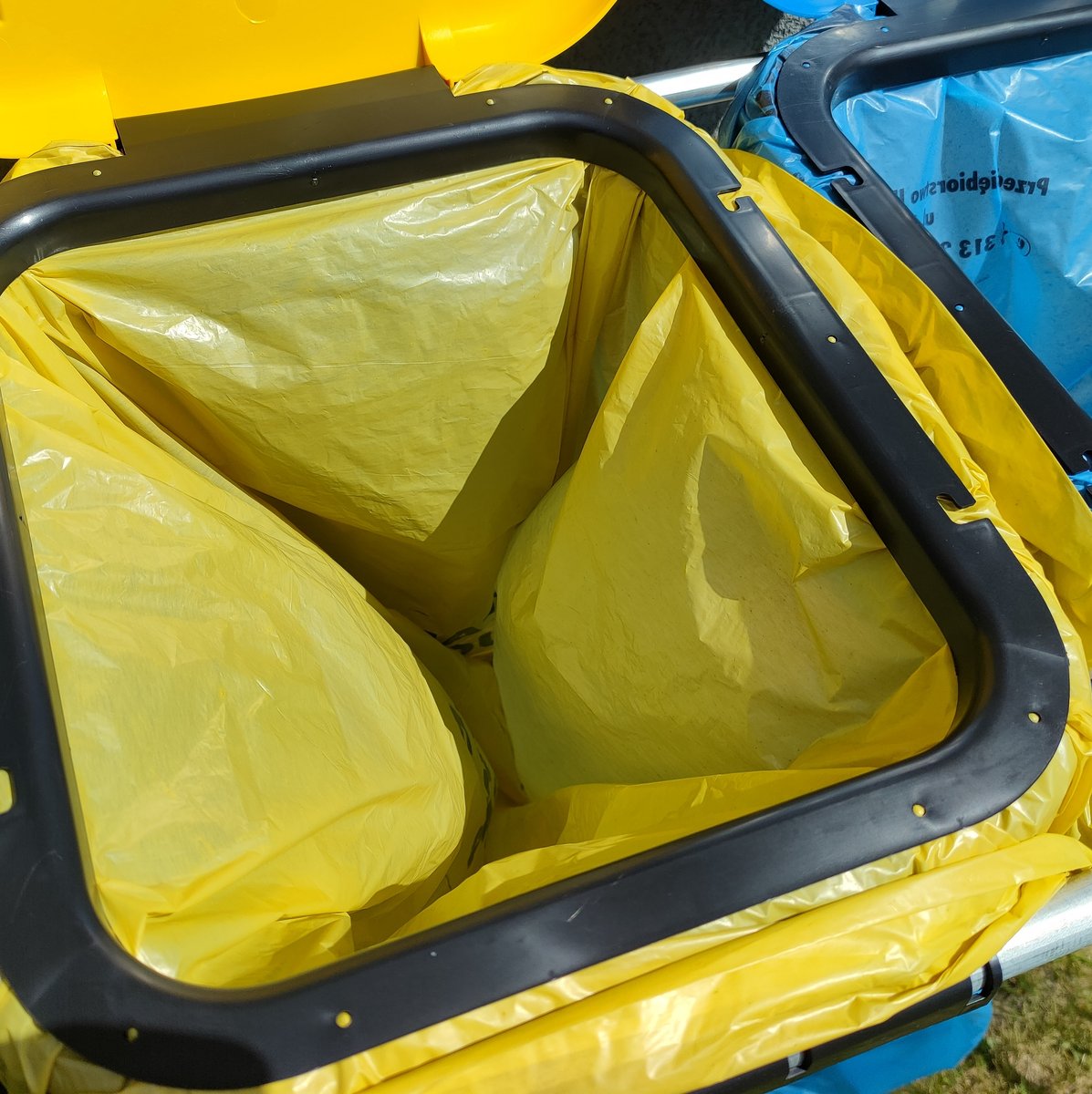 ✅ w ramce posiada zaczepy na worek by worek się nie wysuwał w trakcie go zapełnienia