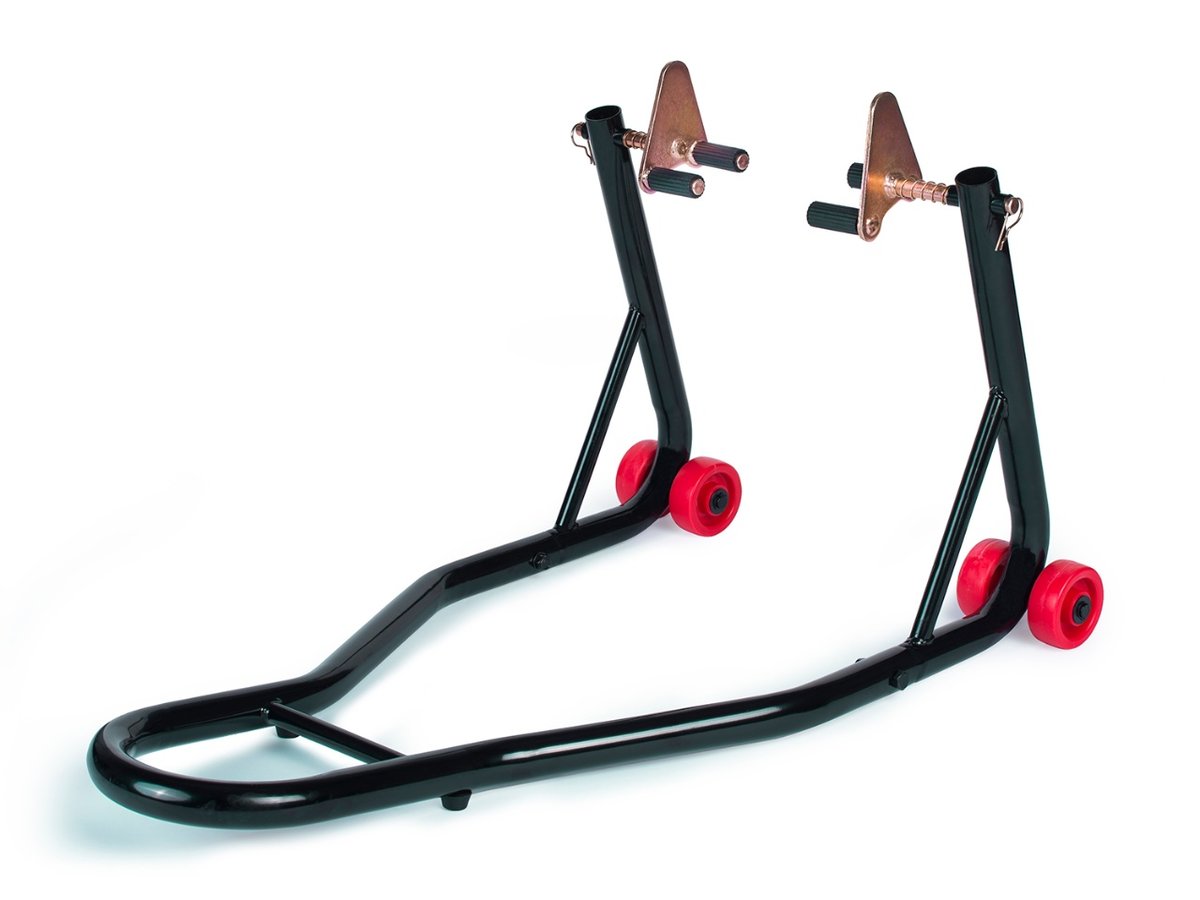 Najwyższy czas przygotować swój motocykl do sezonu! Podczas generalnego przeglądu z pewnością przyda Ci się stojak motocyklowy, który podtrzyma maszynę, byś w tym czasie mógł wykonać wszystkie prace serwisowe. To duże ułatwienie, ponieważ umożliwi ustawienie motoru w stabilnej pozycji nie obciążając opon i tym samym – nie zniekształcając ich. Ten podnośnik motocyklowy wykonany jest z wysokogatunkowej stali.