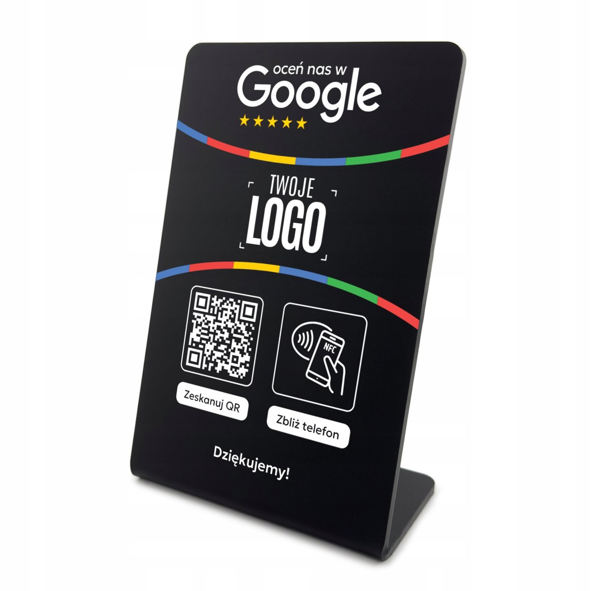 Właśnie zrecenzowałem Stojak NFC QR stand prezenter gięty tabliczka do opinii Google z LOGO FIRMY