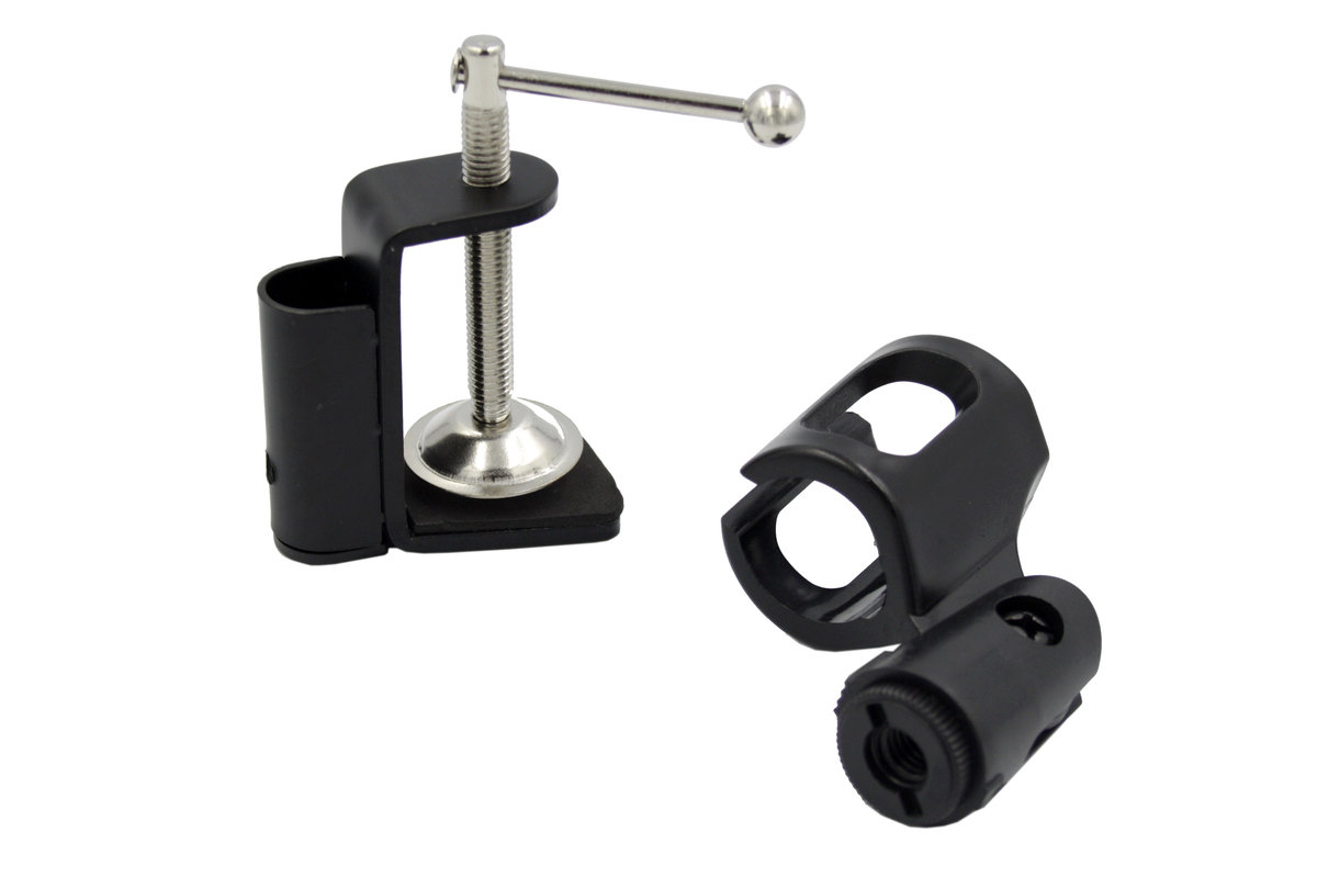 W zestawie znajduje się uniwersalne mocowanie pozwalające na zamocowanie większości mikrofonów o średnicy do 3 cm.