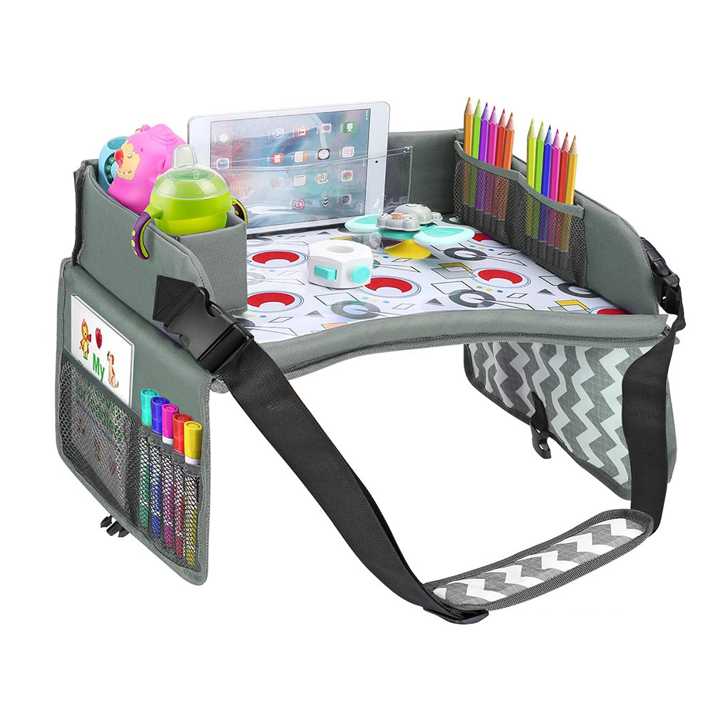 Ten przenośny stolik dziecięcy to niezastąpiony pomocnik podczas długich podróży. Dzięki wysokiemu brzegowi, dzieci mogą bezpiecznie bawić się, rysować, oglądać bajki lub używać tabletu, nie martwiąc się o spadające przedmioty.