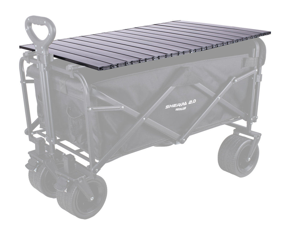 Ten lekki, składany stolik łatwo przekształci wózek Sherpa 1.0 lub 2.0 w wygodną powierzchnię roboczą. Jego harmonijkowa konstrukcja umożliwia szybkie rozłożenie, a blat mocowany jest do stelaża, który następnie przymocowuje się do ramy wózka. To idealne miejsce na napoje, książkę czy drobny sprzęt.
