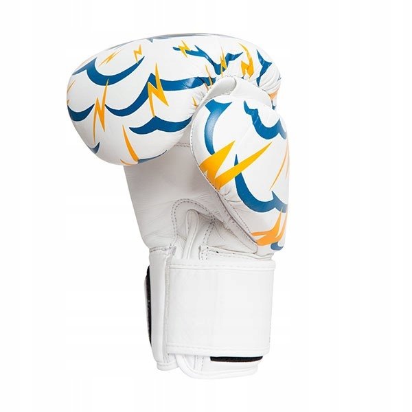 Biało-niebiesko-żółte rękawice Muay Thai ze skóry naturalnej StormCloud Blizzard MonsterCloud