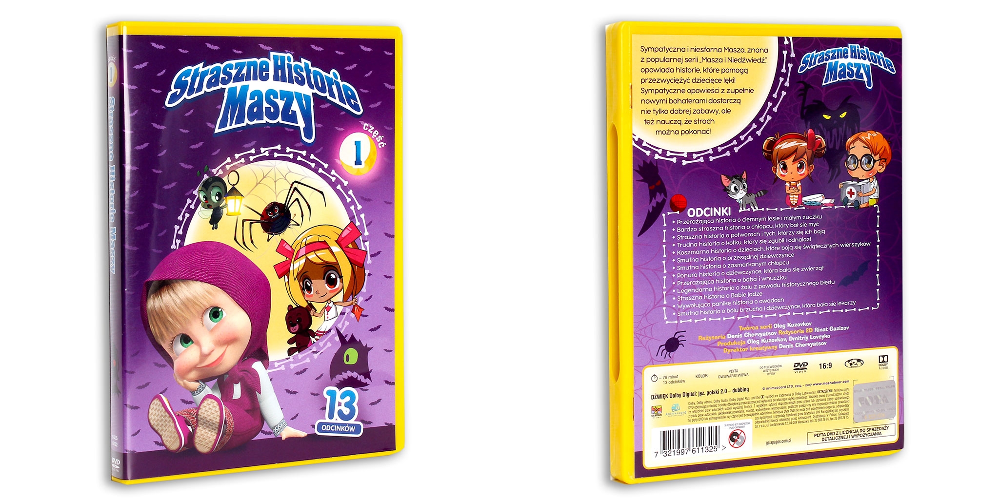 Sympatyczna i niesforna Masza, znana z popularnej serii „Masza i Niedźwiedź”, opowiada zupełnie nowe historie, które pomogą przezwyciężyć dziecięce lęki. Intrygujące opowieści dostarczą nie tylko dobrej zabawy, lecz także nauczą, że strach można pokonać! Część 1 na DVD zawiera m.in. straszną historię o potworach i tych, którzy się ich boją, przerażającą historię o ciemnym lesie i małym żuczku oraz bardzo straszną historię o chłopcu, który bał się myć.