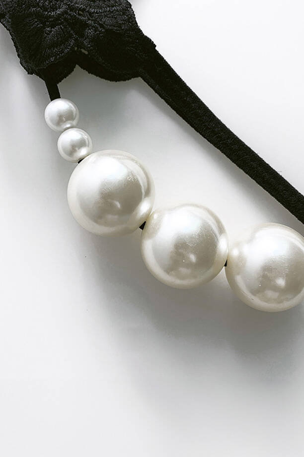 Koronkowe stringi z dużymi perełkami – zmysłowy detal i elegancja