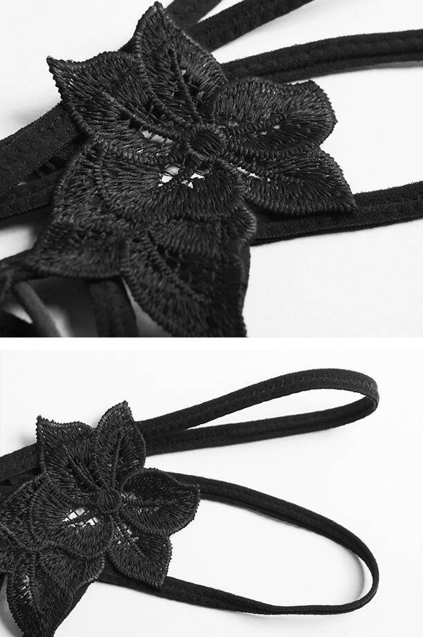 Stringi zostały wykonane z miękkiego, elastycznego materiału, który doskonale dopasowuje się do sylwetki. Delikatna koronka z kwiatowym motywem zdobi przód, tworząc romantyczny i elegancki akcent. Jednak prawdziwym wyróżnikiem tego modelu jest ozdobny sznureczek z dużych pereł, który nie tylko zachwyca wizualnie, ale też zapewnia przyjemne doznania podczas noszenia.