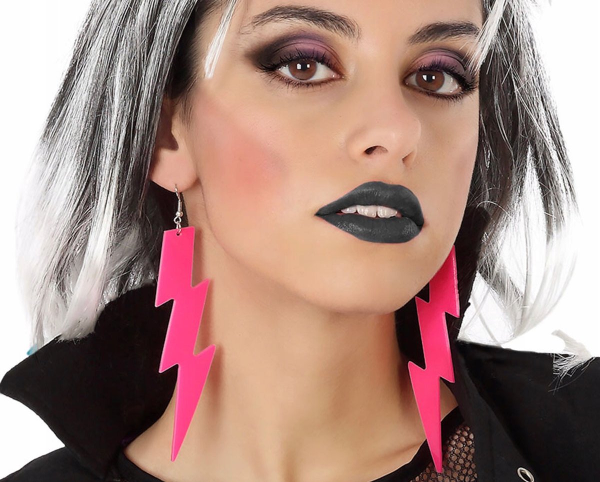 KOLCZYKI NEONOWE BŁYSKAWICE RÓŻOWE