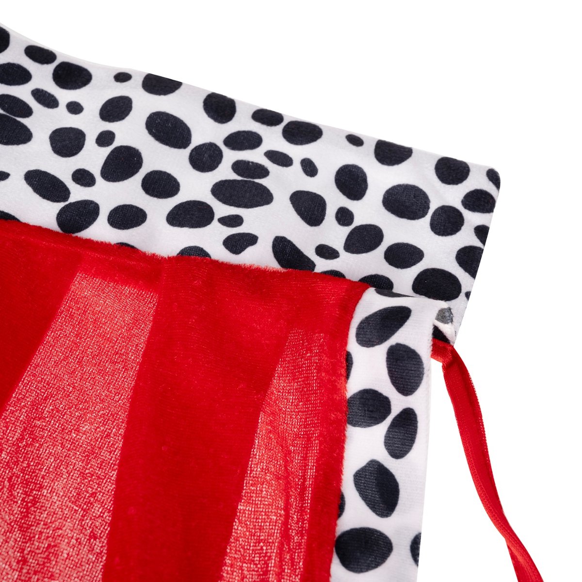 PELERYNA - jest centralnym elementem przebrania, emanuje elegancją i majestatem. Wykonana z wysokiej jakości, miłego w dotyku materiału w kolorze głębokiej czerwieni. Wykończona jest biało czarnym sztucznym futerkiem, które dodaje jej szlachetności. Peleryna została zaprojektowana tak, aby z wdziękiem układać się na ramionach i opadać kaskadą na plecy, tworząc dramatyczny i królewski efekt. Peleryna posiada długie troczki, które ułatwiają przymocowanie jej na ramionach.
