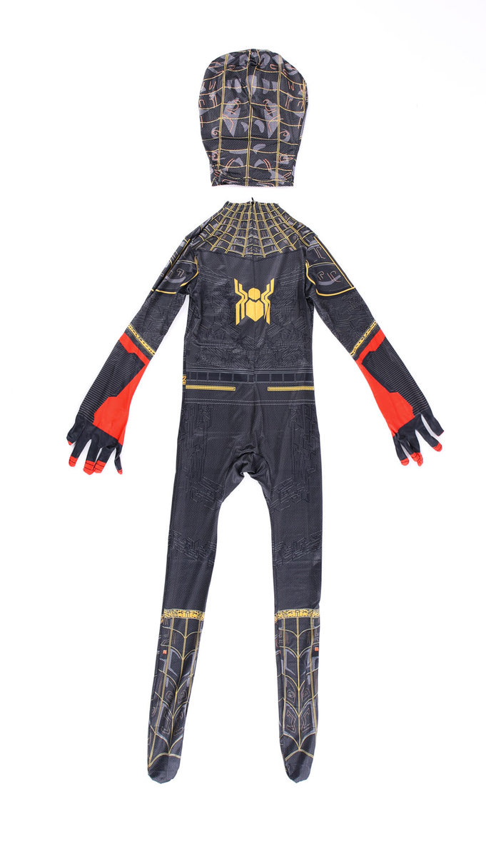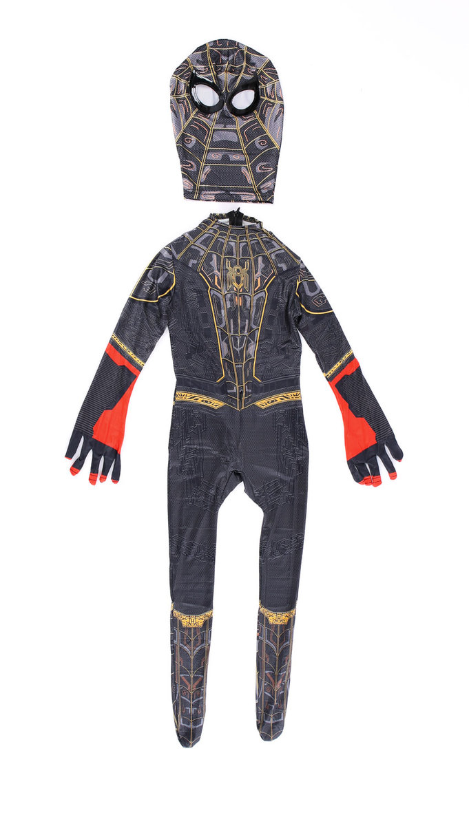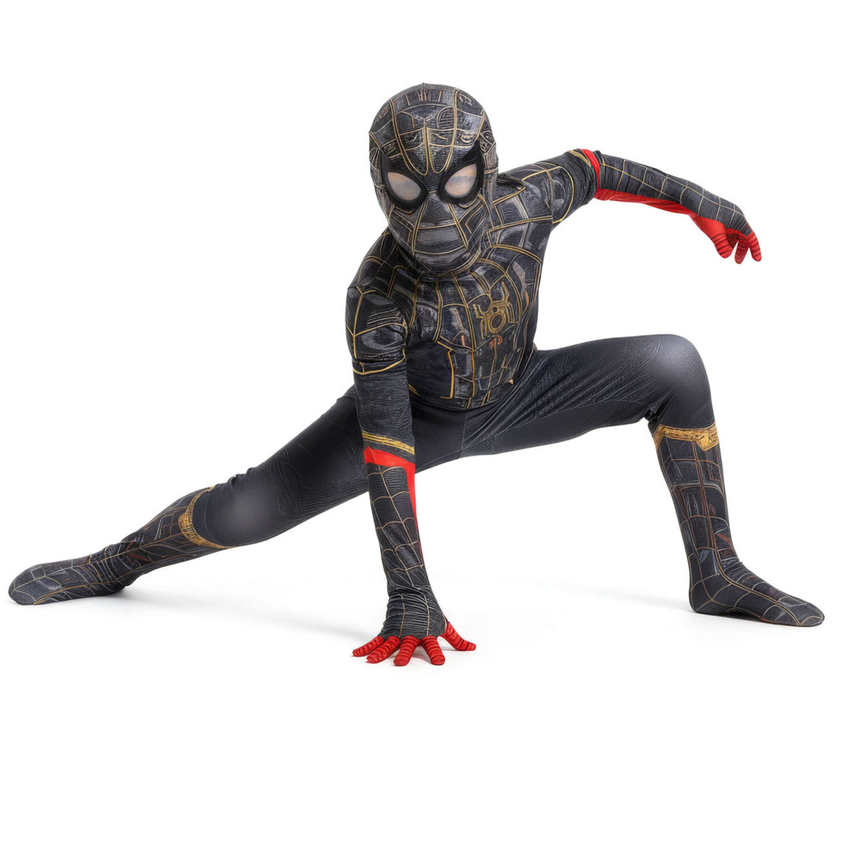 Rękawy mają zintegrowane palce, dzięki czemu dłonie wyglądają jak prawdziwe rękawice Spider-Mana, a nogawki są zaprojektowane tak, by wygodnie wsunąć stopę jak w rajstopy – bez dodatkowych zapięć i przeszyć.