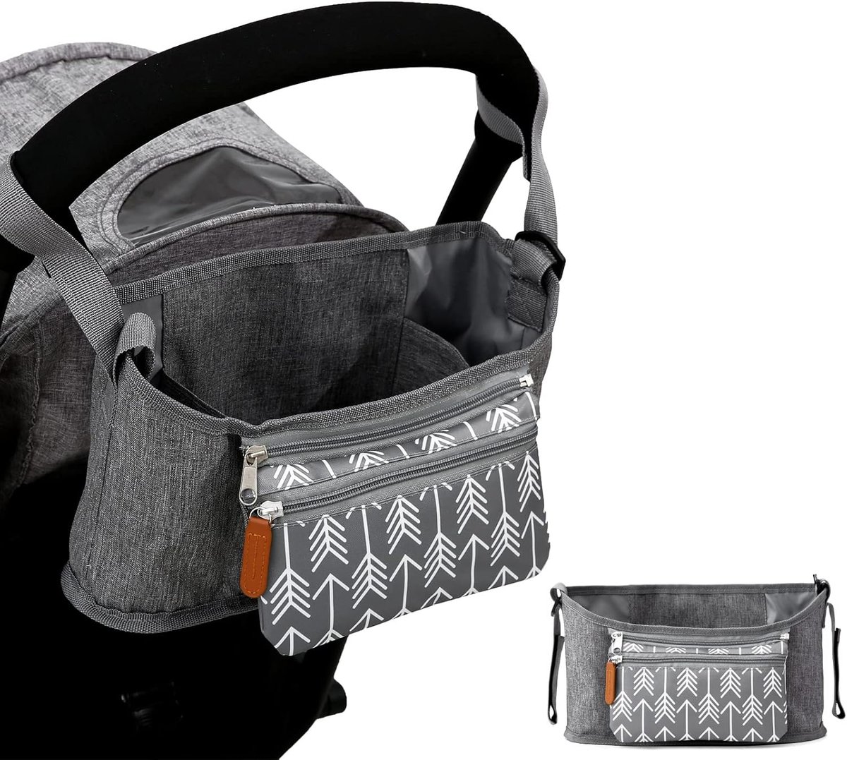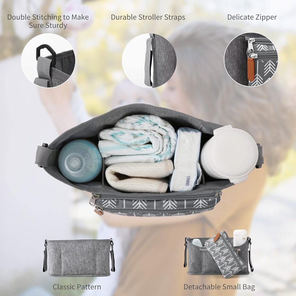 Stroller Diaper Organizer with Multiple Pockets Universal Fits Most Strollers, Holds Diapers, Wipes and Toys, Arrow