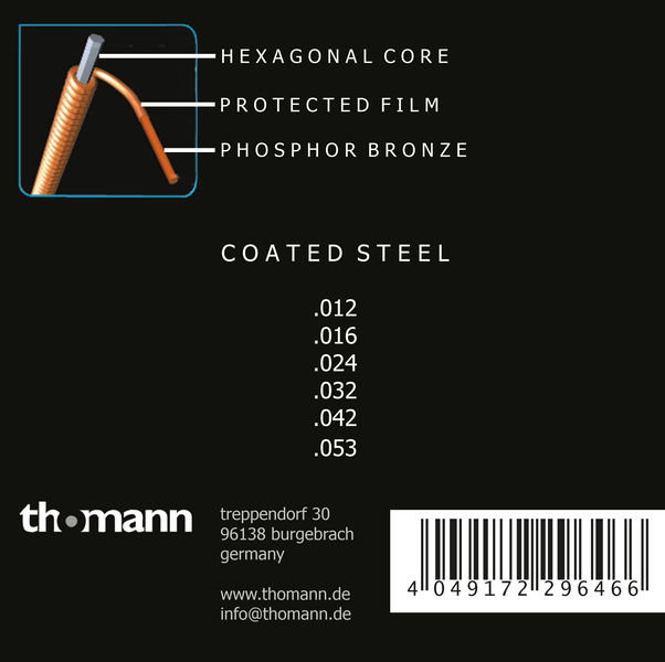 Phosphor bronze Powlekany nierdzewny Sześciokątny stalowy rdzeń Rozmiary: 012, 016, 024, 032, 042, 053
